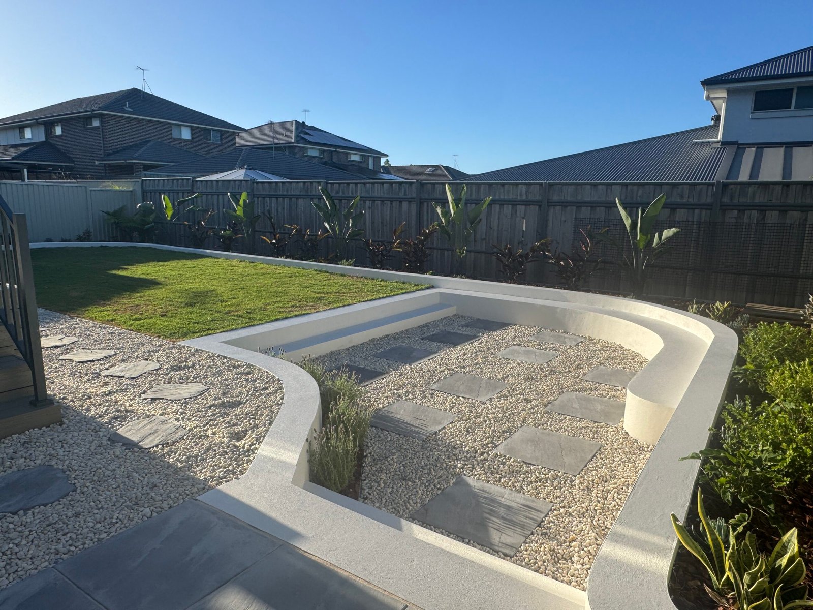 A carefully crafted sunken seating area brought to life through a seamless design-and-build process, creating a cozy and immersive outdoor retreat.