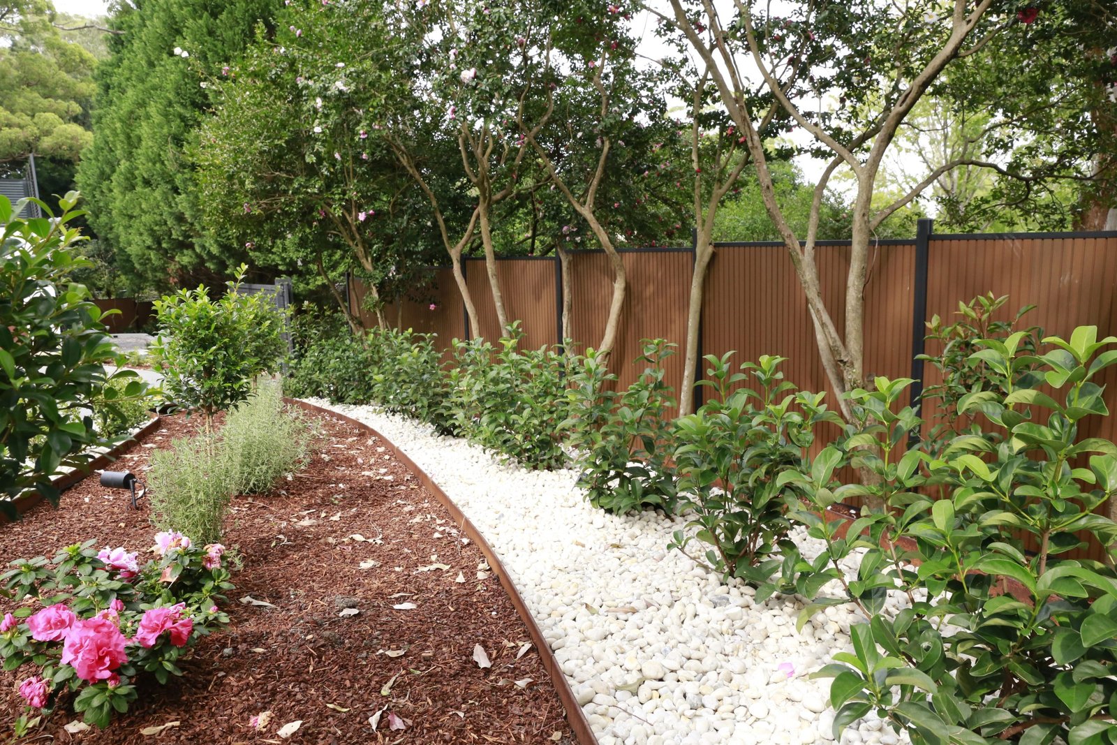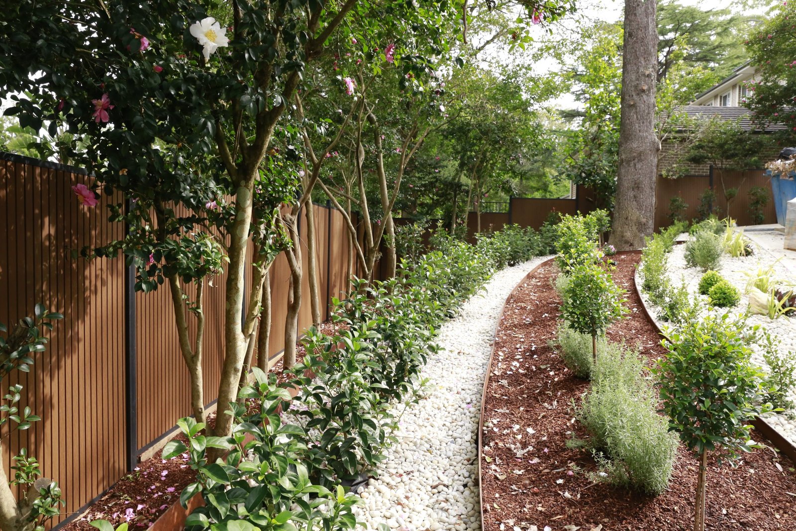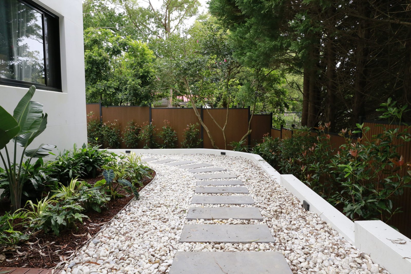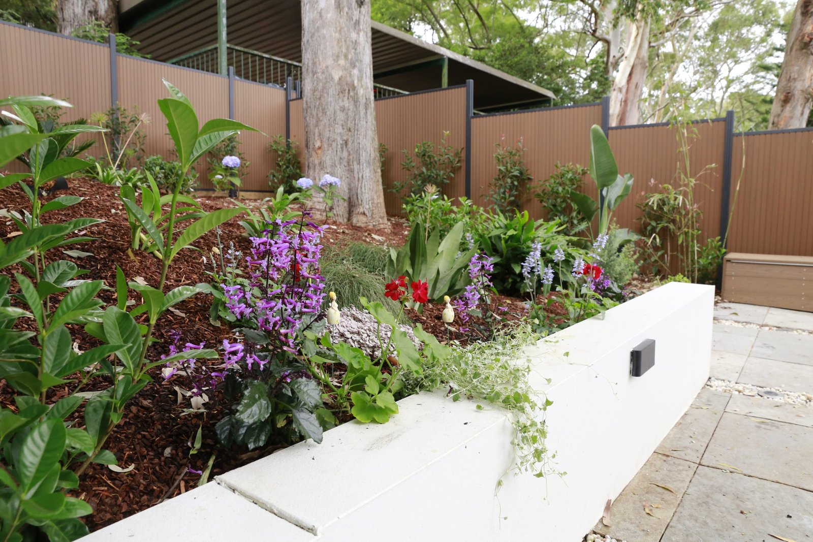Awarded in the Sydney Design Awards, this Killara landscape construction transforms a steep site into tiered usable spaces while protecting valuable on-site trees.