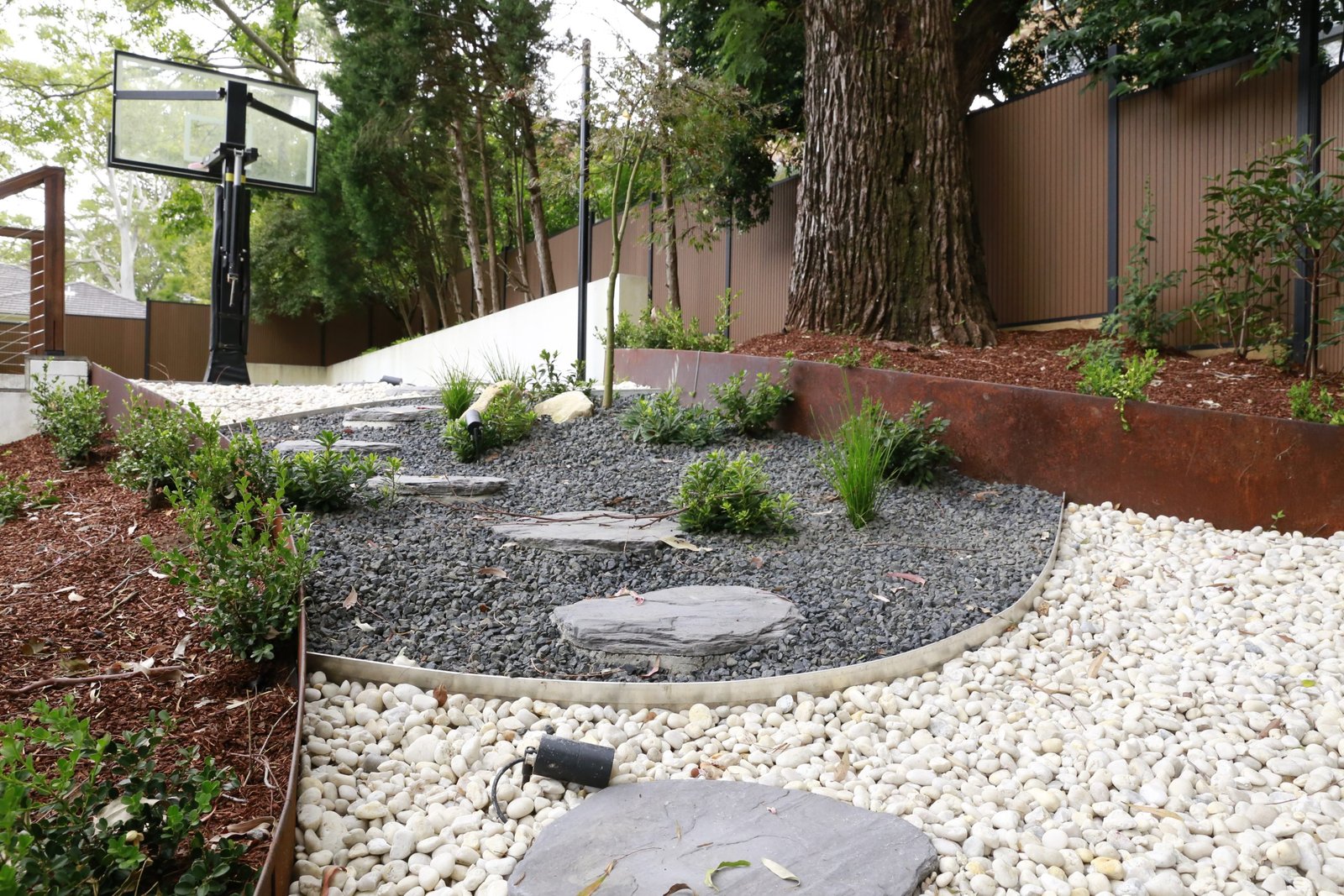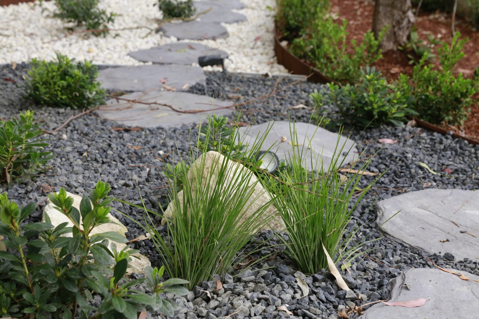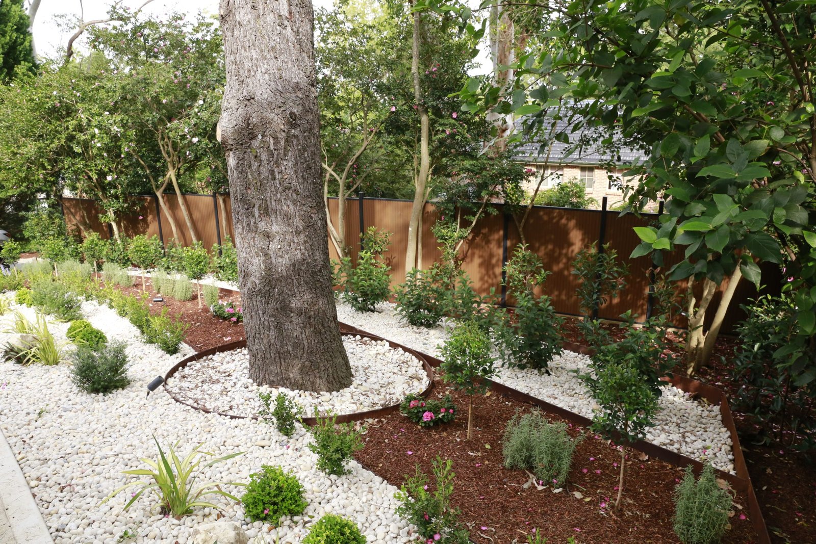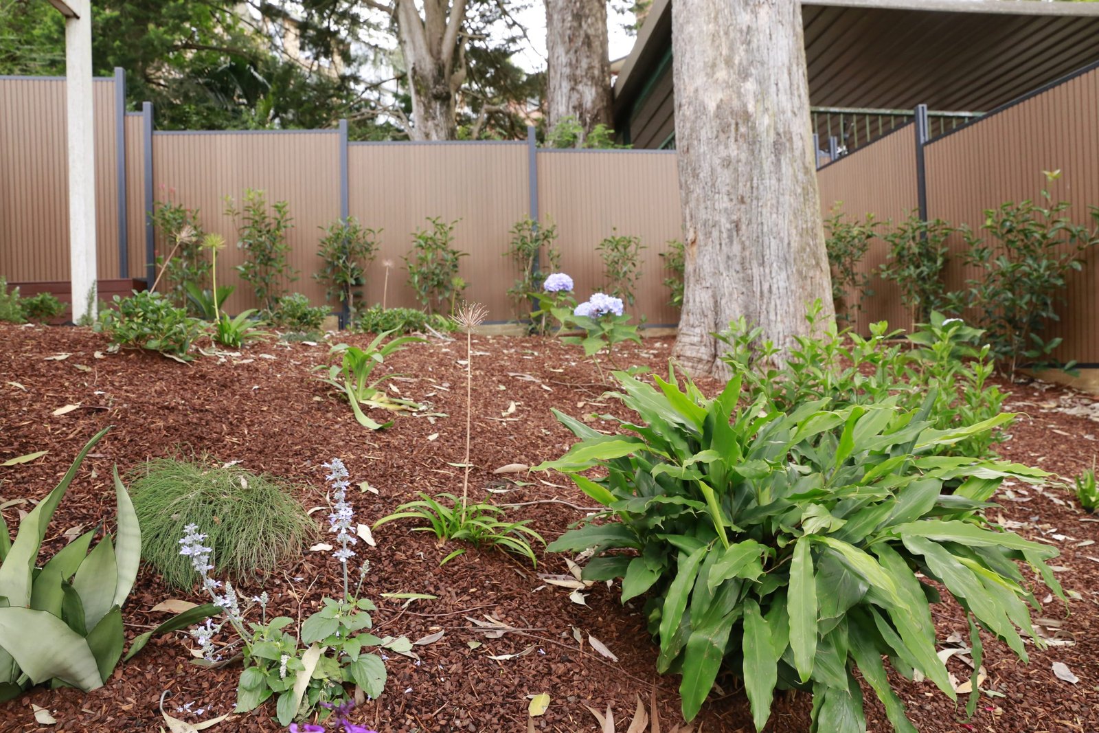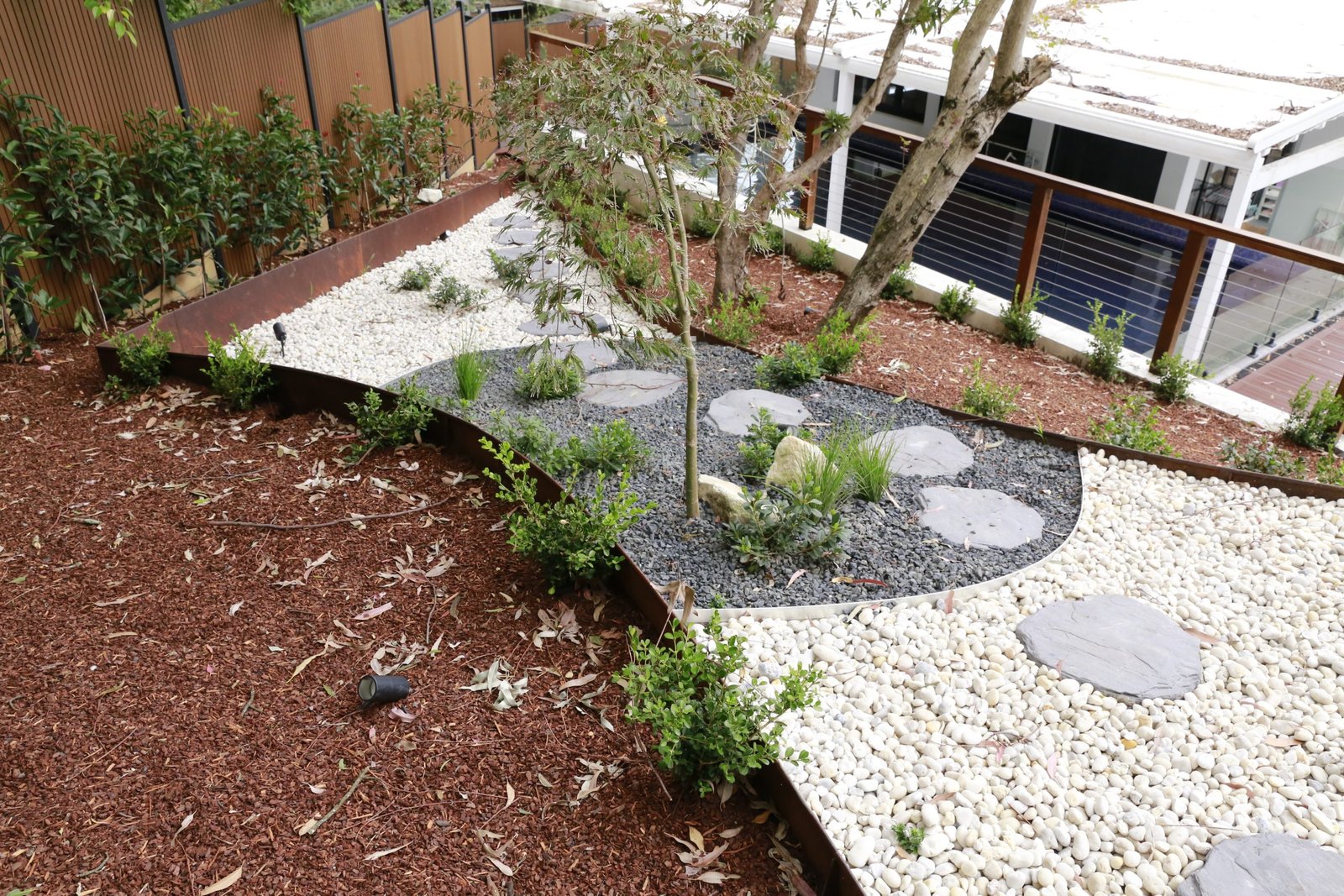 Awarded in the Sydney Design Awards, this Killara landscape construction transforms a steep site into tiered usable spaces while protecting valuable on-site trees.