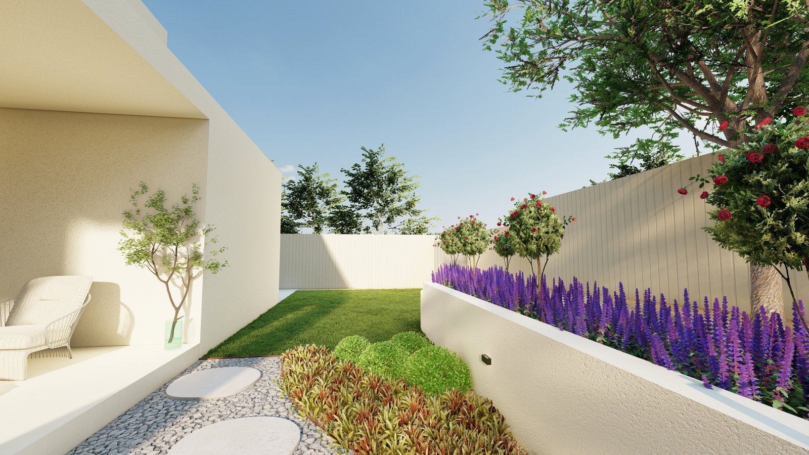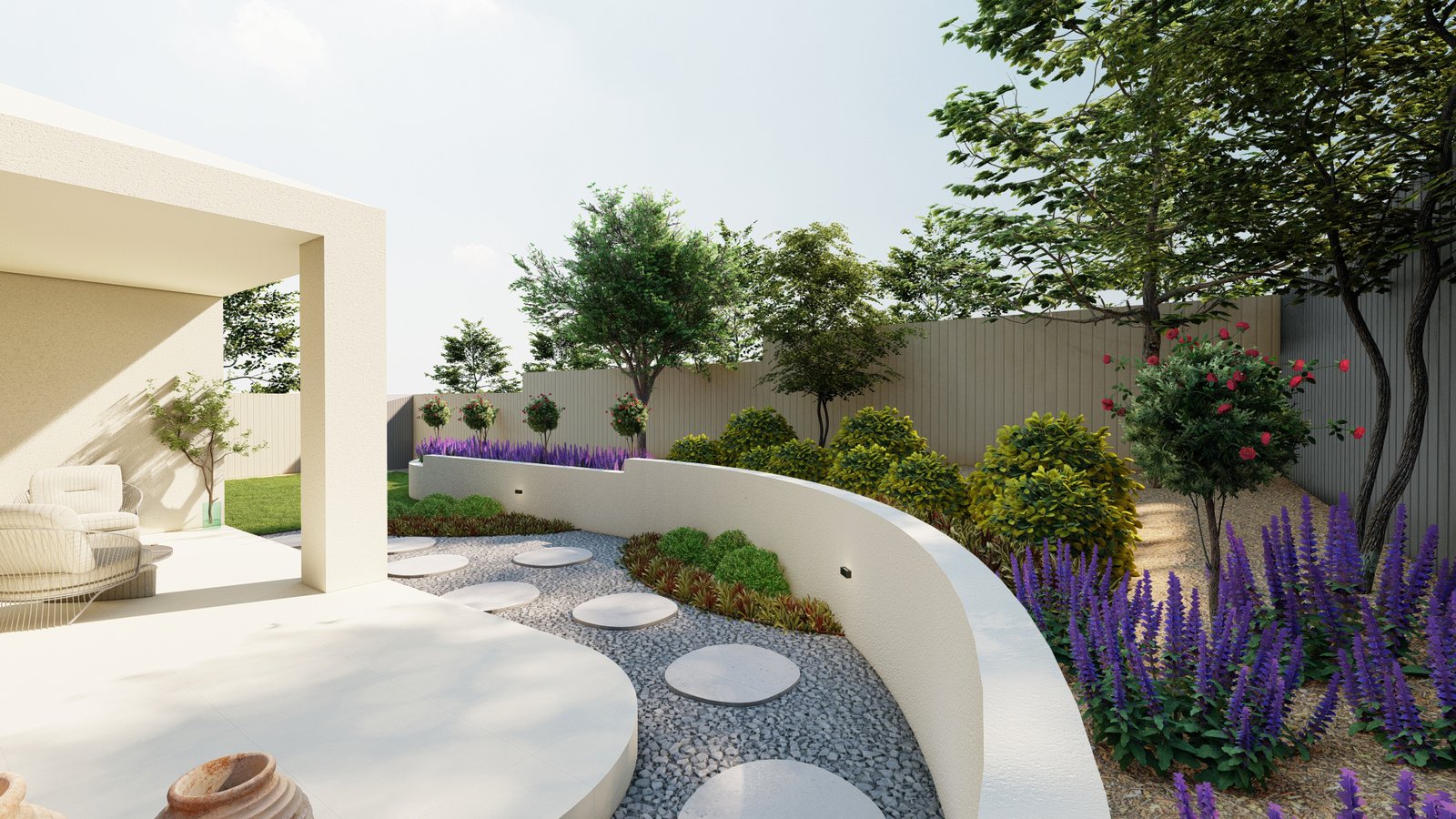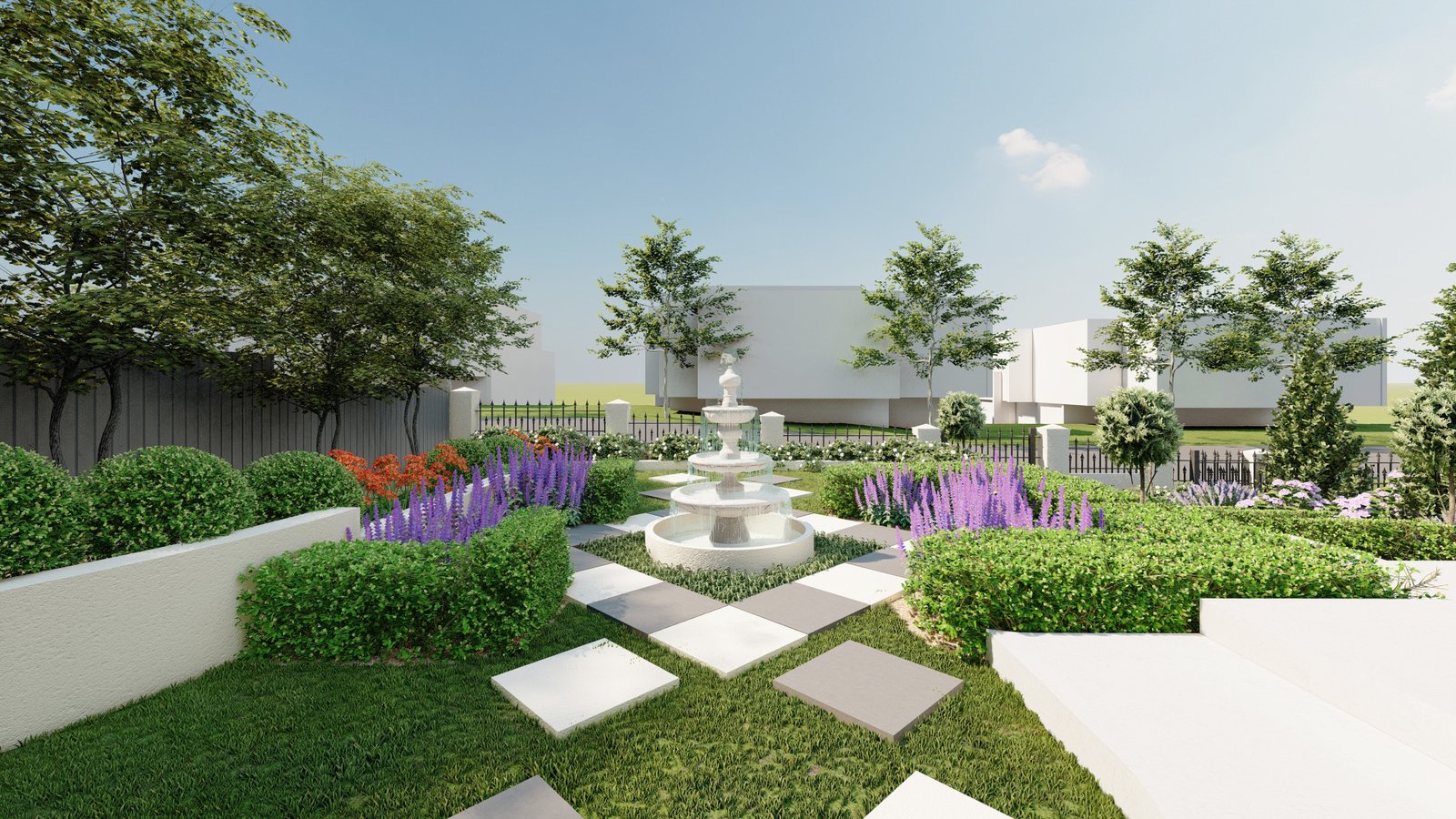 Designed in a French style, this Castle Hill landscape combines structured planting and classic materials to form an elegant and atmospheric outdoor environment.