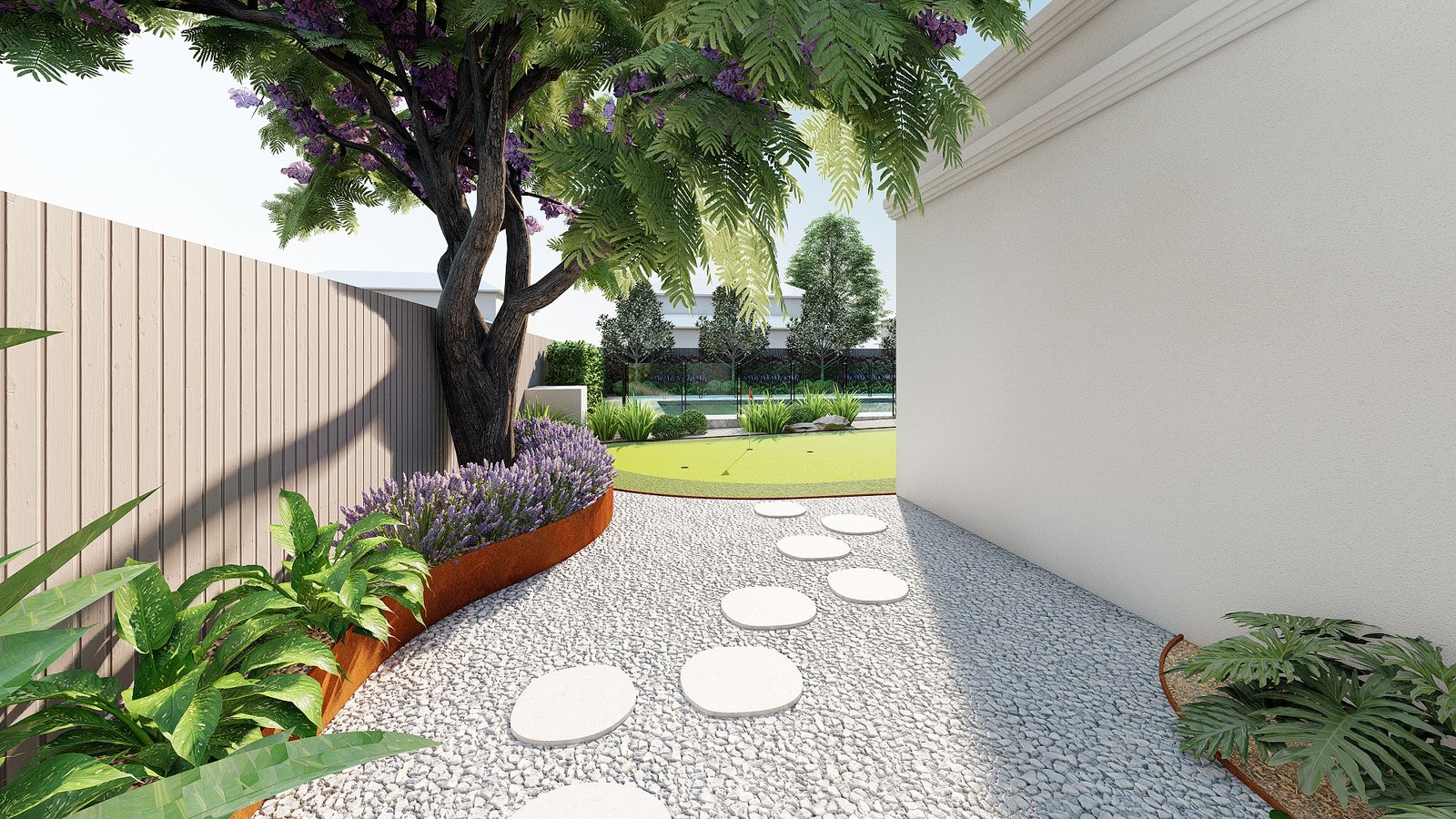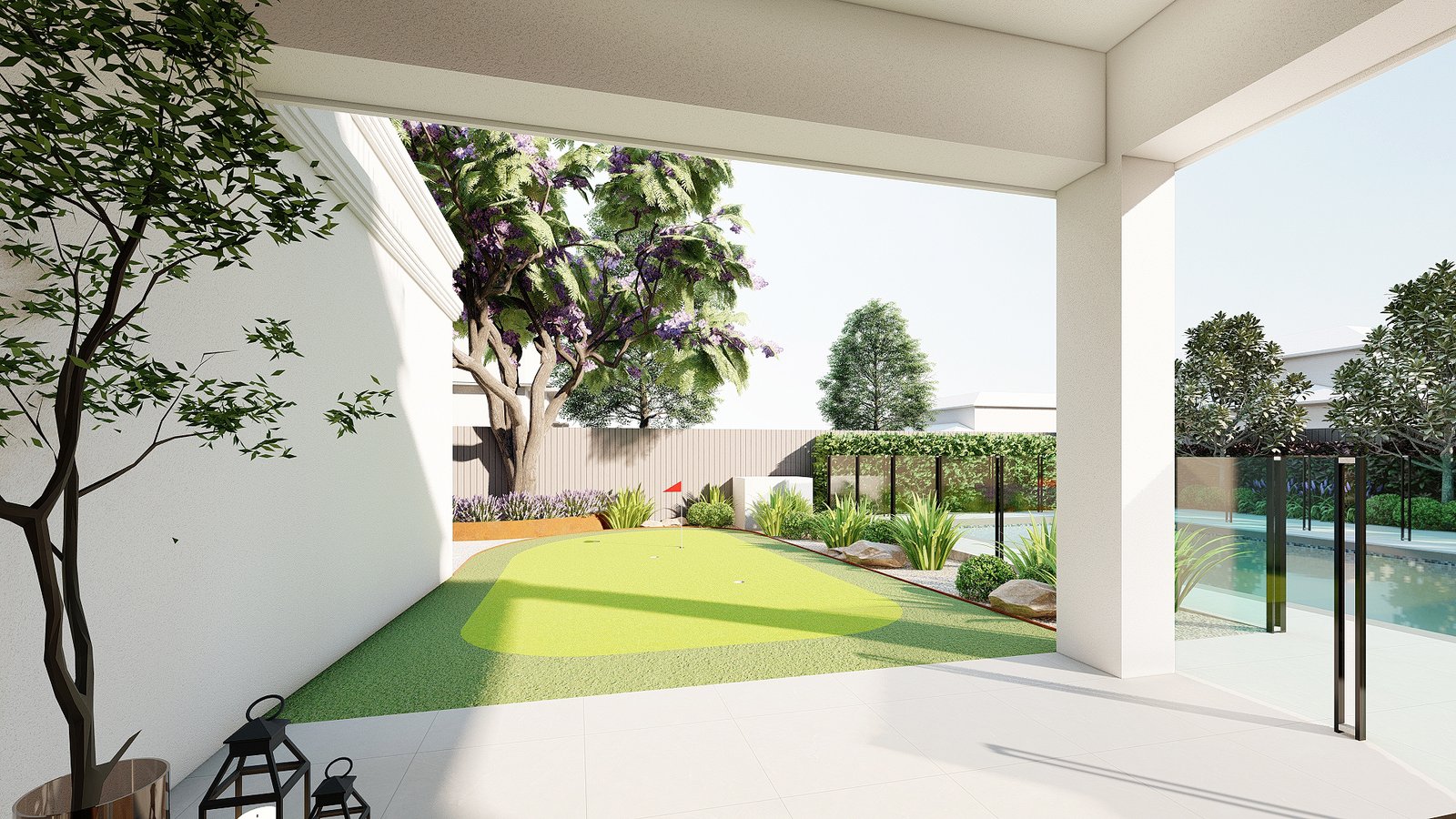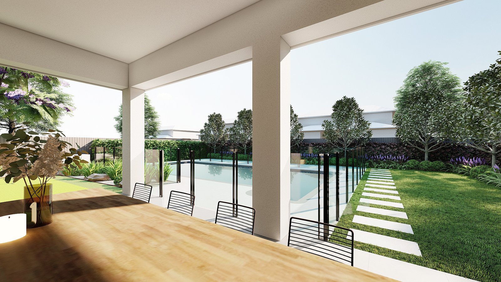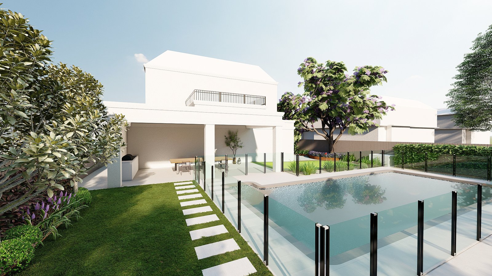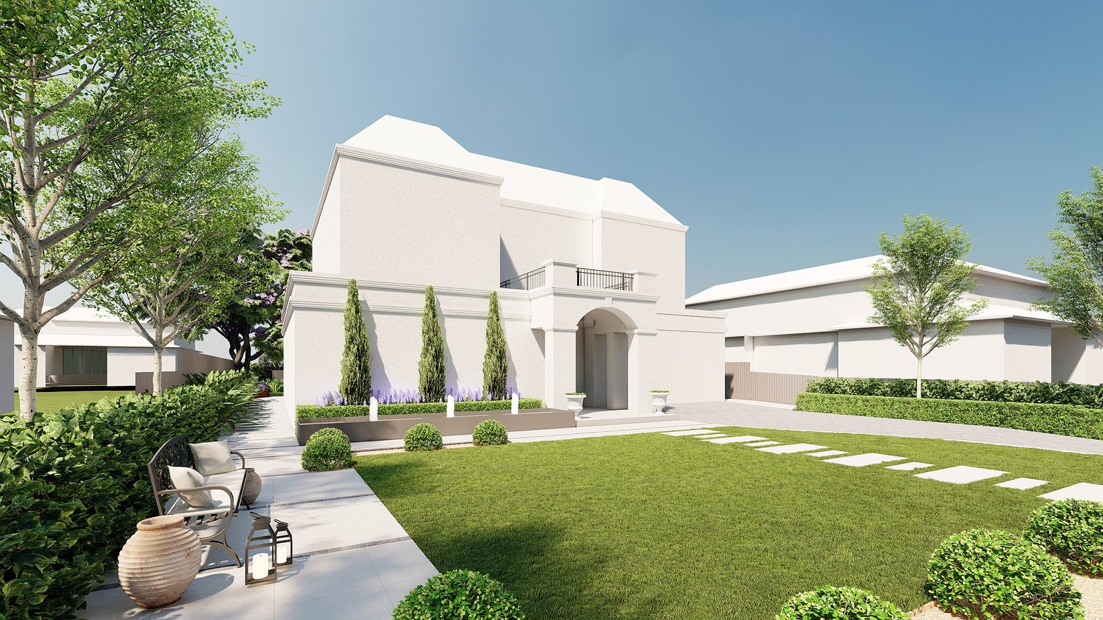 A French-inspired luxury garden in Turramurra that integrates refined outdoor spaces with entertaining and leisure areas for elegant everyday living.